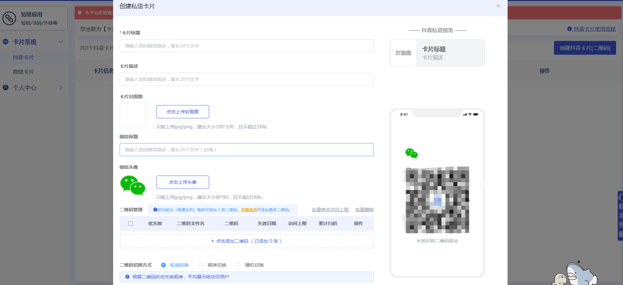 2. 点击抖音卡片,生成抖音私信卡片
