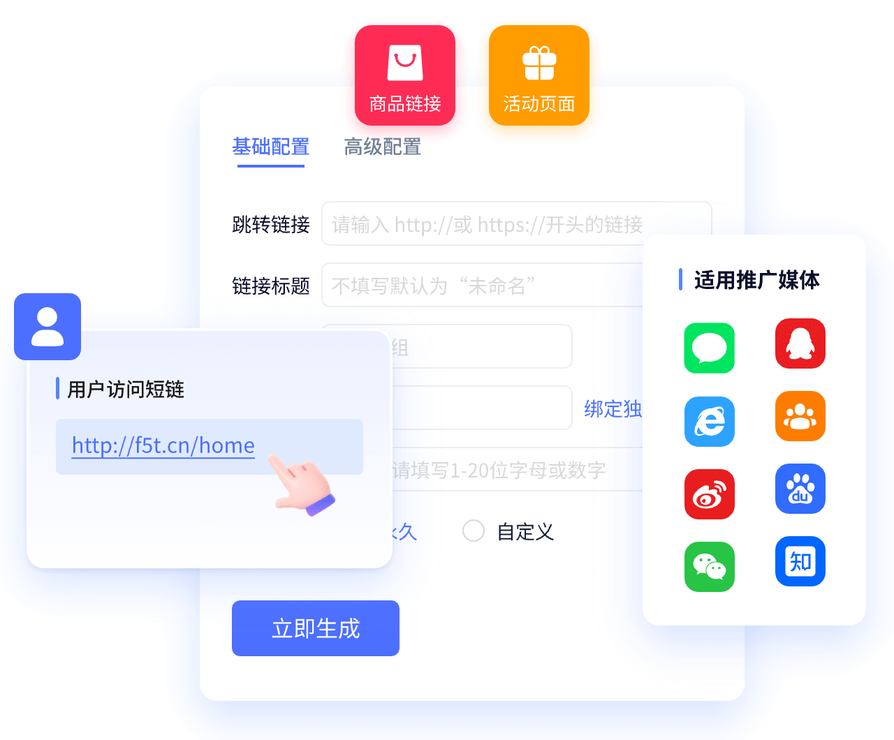 可将短链放置在您的短信、微博等场景中进行推广使用