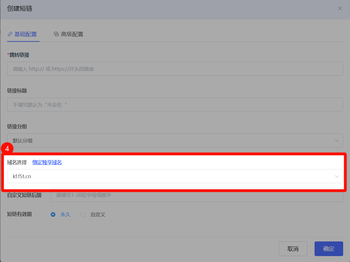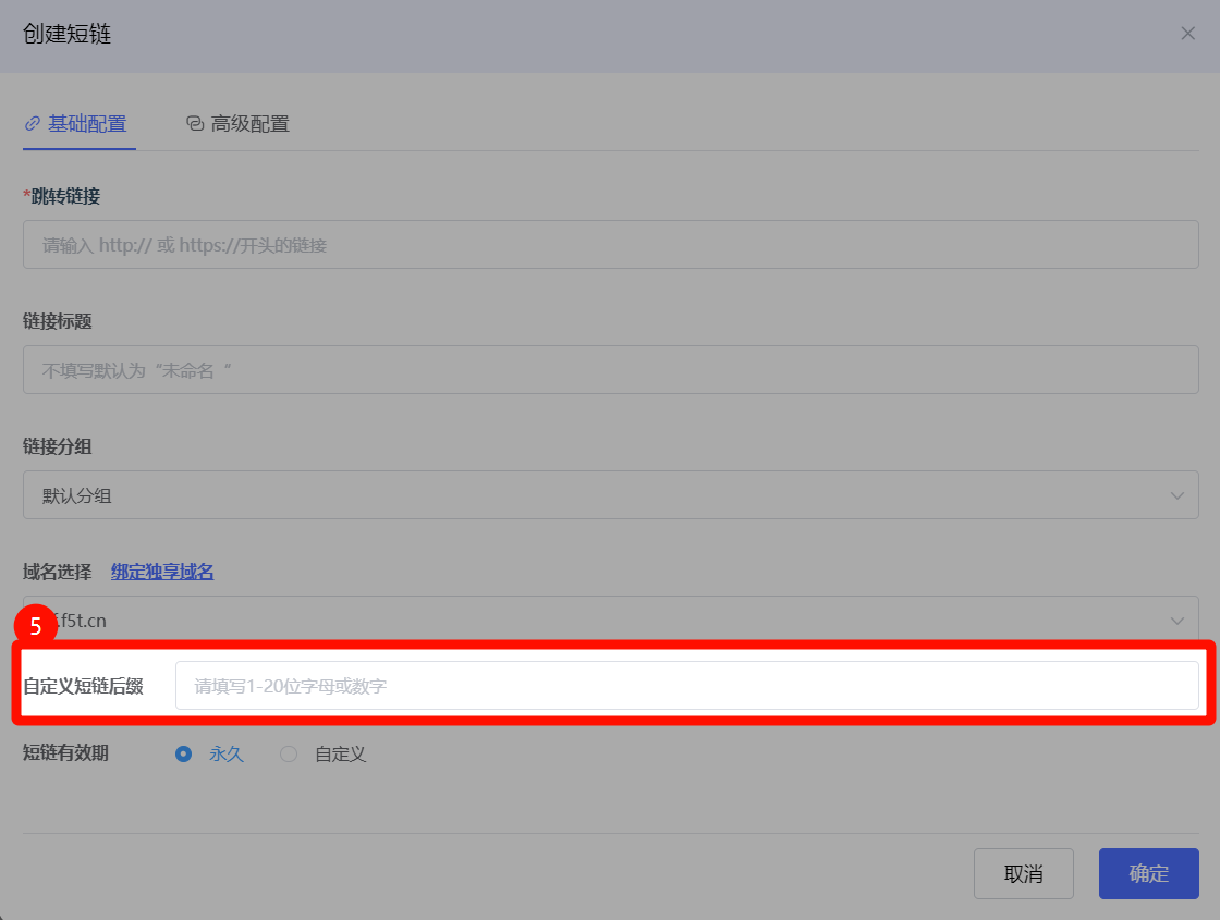 使用自有域名创建的链接支持为短链自定义后缀,可根据推广需求设置期望的后缀,帮助您加强品牌标识提高链接美观度