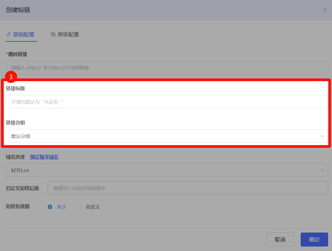 第三步:输入链接标题和分组