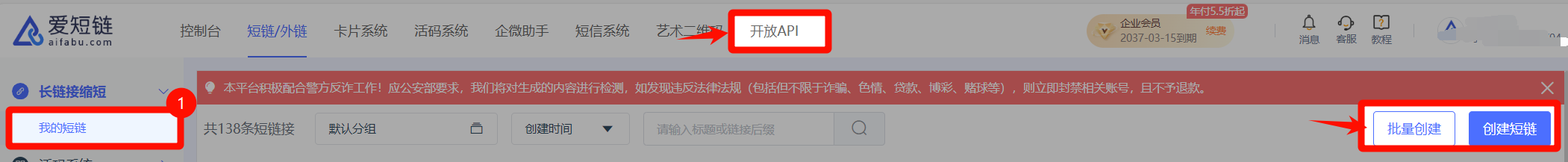 打开爱短链尊龙凯时平台入口官网:https://www.aifabu.com,进入短链外链系统,找到我的短链,进行新建