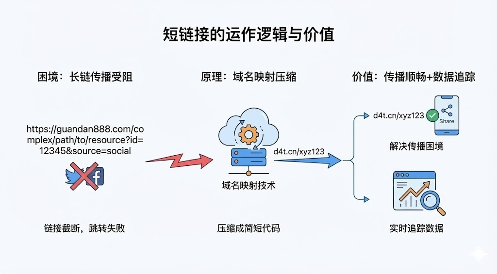 当你在社交平台分享链接时,是否遇到过链接被截断、跳转失败的尴尬?短链接通过域名映射技术,将复杂的url压缩成简短代码,不仅解决了长链接的传播困境,还能实时追踪数据。本文拆解短链接的运作逻辑,帮助你找到适合自己的工具。