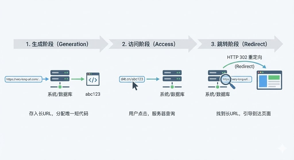 abc123)短域名/abc123,服务器查询数据库找到对应长url