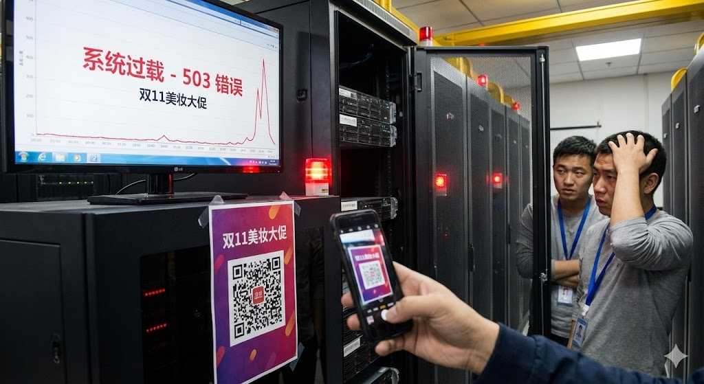 去年双11,某美妆品牌在线下投放了一批活码海报。凌晨0点促销开始,5分钟内涌入8万次扫码请求——系统直接卡死,用户扫码后要等30秒才能跳转,最后错失了一半流量。这个案例暴露了一个核心问题:活码看起来只是个二维码,但背后要处理的是"海量并发 实时分流 数据统计"的复杂链路。流量突然爆发时,架构的短板会被无限放大。