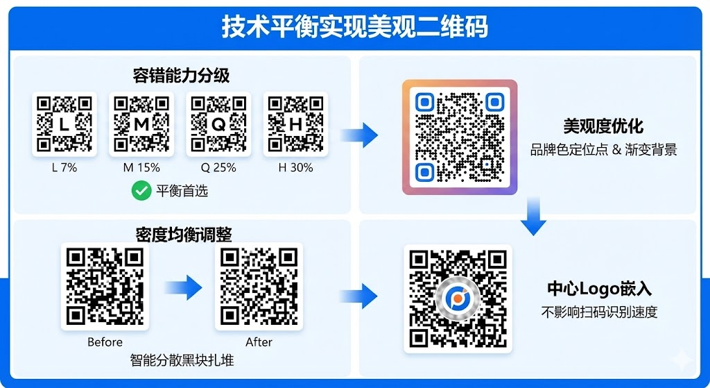• 系统智能识别黑块扎堆区域,通过调整编码模式分散密度让码看起来更均匀