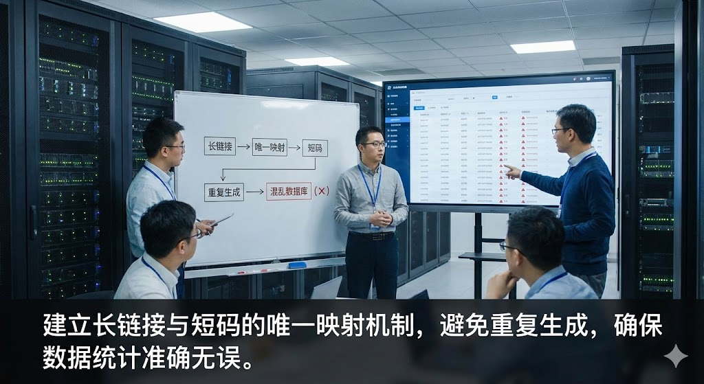 存储空间被大量重复数据占用。一个电商大促活动,可能产生几万条指向同一商品页的短链接记录,数据库容量快速膨胀。访问统计数据也会失真——用户点击的是同一个页面,但因为短码不同,系统把它们当作独立链接统计,无法准确评估推广效果。运营人员想修改目标页面时,需要逐个更新几十个短码的映射关系,容易遗漏出错。