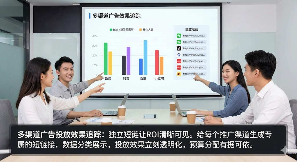 同时在多个平台投广告,最怕钱花了却不知道哪个渠道有效。广告预算分散在微信、抖音、百度、小红书等多个平台,月底复盘时却发现:总花费清楚,但具体哪个渠道带来了客户?哪个平台在烧钱没效果?数据混在一起根本说不清。给每个推广渠道生成专属的短链接,就成了解决问题的关键。每个链接对应一个渠道,用户点击后系统自动记录来源,后台数据按渠道分类展示,投放效果立刻透明化,让预算分配有据可依。