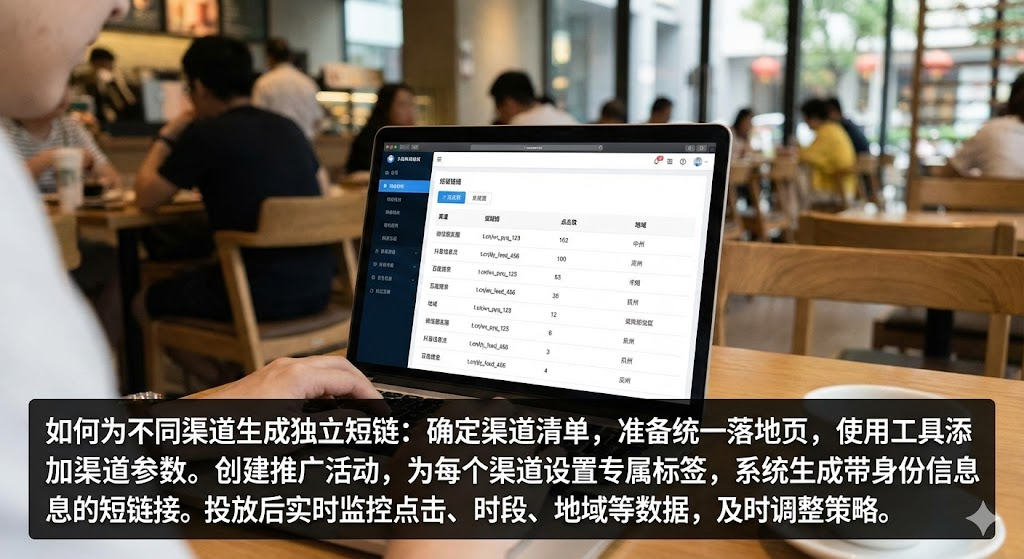 给每个渠道生成专属短链接,就像给每个推广入口发了张"身份证"。微信朋友圈用a链接,抖音信息流用b链接,百度搜索广告用c链接。用户从哪个渠道点进来,系统就自动打上对应标签。后台报表按渠道分类显示:微信带来320次点击、转化18单,抖音带来580次点击、转化12单。数据清晰,对比直观。