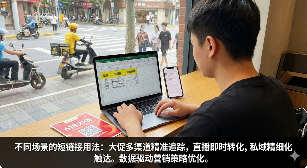 2. 直播带货的即时转化:直播间里主播说"宝宝们点击购物车链接",但购物车链接通常很长,用户复制粘贴容易出错。更好的方式是在直播间公告栏、评论区置顶一个短链接,用户直接点击就能跳转到商品页。直播不同时段观众属性不同,你可以给这三个时段分别生成短链接,通过数据对比找出最佳成交时段,下次直播重点维护那个时段的流量。