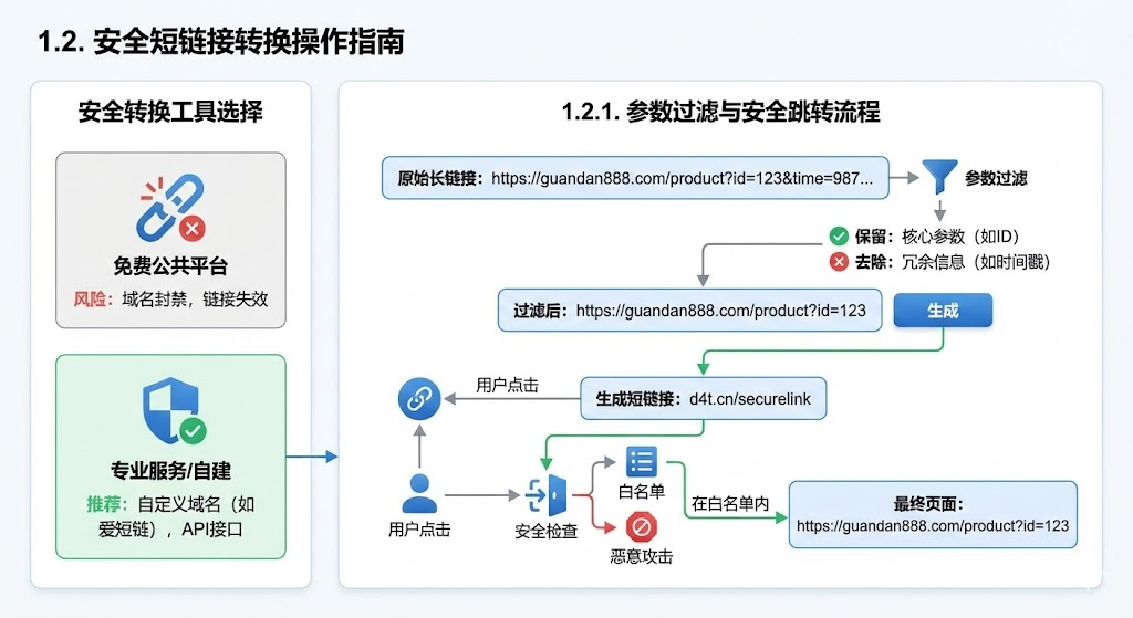 转换前要先检查原始链接里的参数。有些参数是业务必需的,比如商品id、活动编号;有些则是系统自动添加的冗余信息,比如时间戳、会话标识。建议只保留核心参数,把其他可能泄露隐私的内容过滤掉。先解析url结构,提取出参数列表,然后按照白名单规则重新组合。在还原短链接时,不要直接启用自动跳转功能,而是先获取http响应头里的目标地址,检查域名是否在白名单内,确认安全后再执行跳转,这能有效防范恶意重定向攻击。