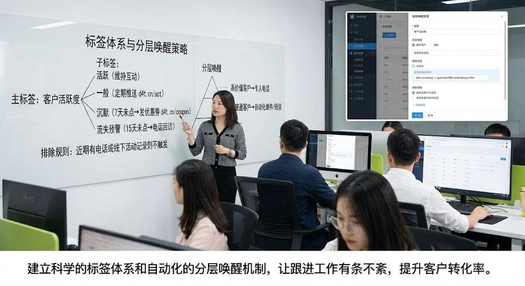 设置好触发条件后,不是就一劳永逸了。每个月都要看看数据:哪些时间阈值下的唤醒成功率最高?哪些标签对应的转化效果最好?如果发现7天未点击的客户唤醒率只有5%,而15天未点击的客户唤醒率反而有12%,那可能是7天这个时间设得太短了。根据数据反馈不断优化触发条件,自动标记才能真正发挥作用。