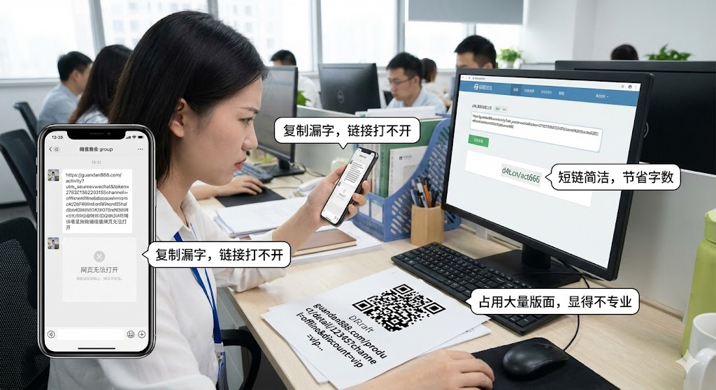 工作群里分享活动链接,结果同事反馈打不开。仔细一看,原来是复制时漏掉了末尾的几个参数。这种情况在日常工作中并不少见,尤其是那些带有utm追踪参数、token验证码的长网址,动辄几十个字符,复制粘贴时稍不注意就会出错。