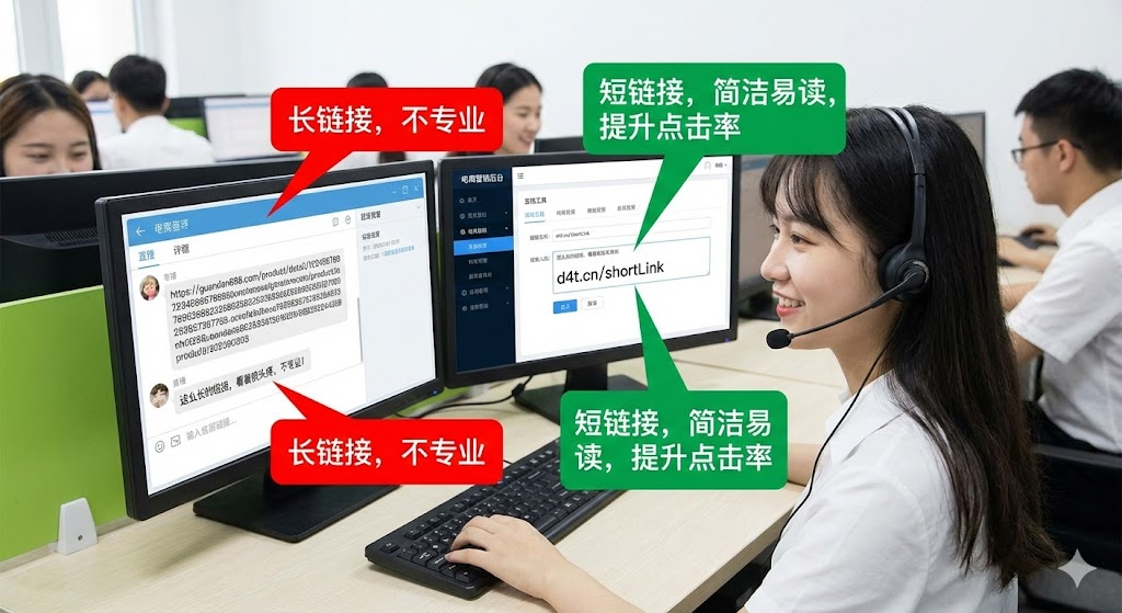 做电商客服的朋友应该都有这样的体验:给客户发商品链接时,那一长串网址看着就让人头疼。尤其在微信、短信里推广时,长链接不仅占用大量字符,还显得不够专业。客户看到这么长的链接,点击意愿自然就降低了。