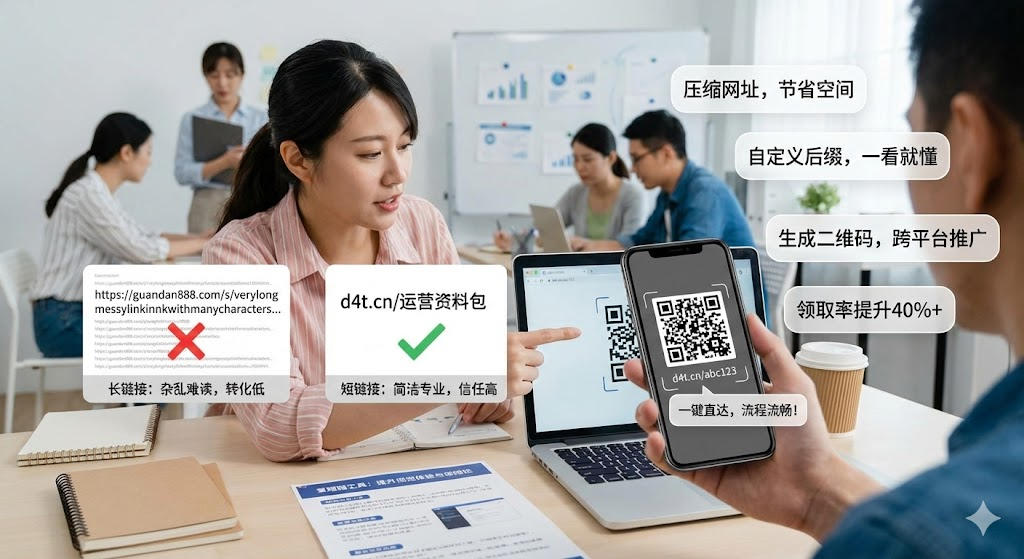 • 不同平台的短链应用技巧:微信公众号文章里可以直接插入短链,设置成超链接形式。社群里发资料时,用短链配合一句话介绍,比如"最新整理的运营工具包→d4t.cn/tools"。抖音不支持评论区放链接,但可以把短链生成二维码,插入到视频画面中。小红书对外链管控严格,建议把短链做成图片水印,或者在评论区用谐音字提示。