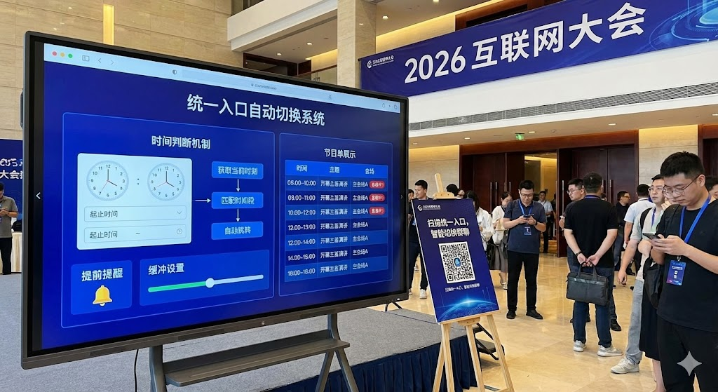 • 节目单展示功能。除了自动跳转,入口页面还能显示完整的活动议程。用户进来后先看到类似电视节目表的时间表,标注每个时段的主题、嘉宾、会场位置。即使提前进入,也能了解接下来的安排,决定要不要继续等待。
