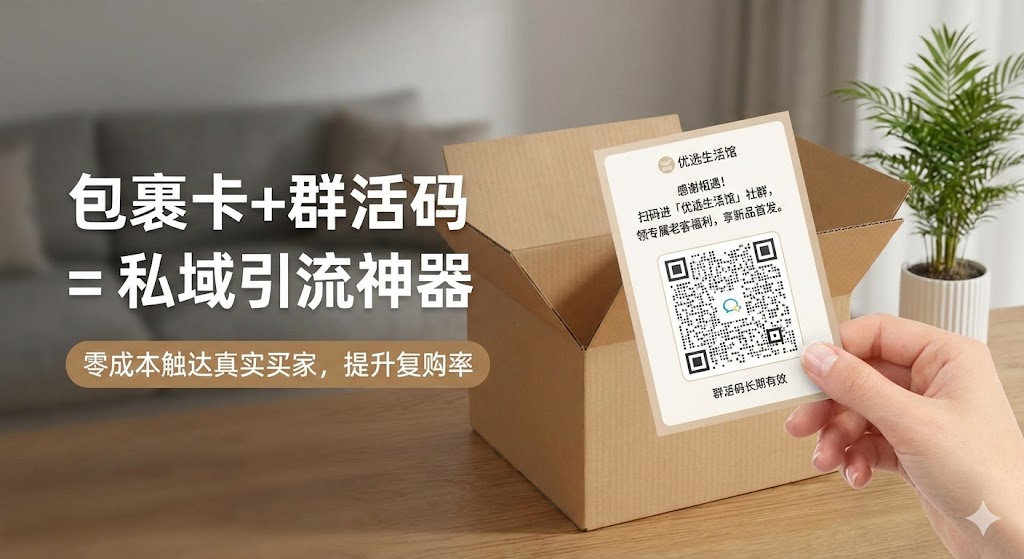 电商平台的流量越来越贵,获客成本不断攀升。很多商家把预算都砸在直通车和推广上,却忽略了一个零成本的触点——包裹卡。每个发出去的包裹,都是一次和真实买家建立联系的机会。在包裹卡上印上群活码,扫码就能进社群,这个动作看似简单,背后却是私域运营的关键一步。