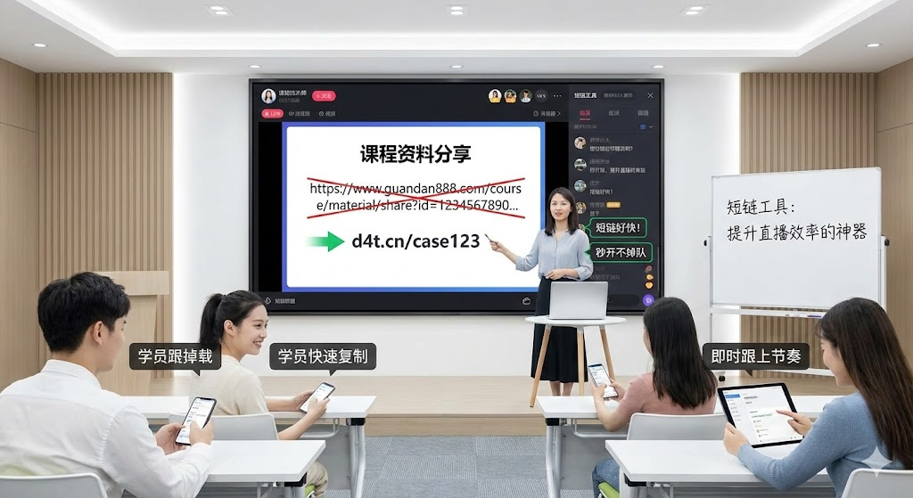 3. 课后传播效率低。直播结束后,回放链接和资料包发到学员群,长链接在聊天记录里被刷屏信息淹没,翻找起来费劲。转发到朋友圈或其他平台时,长链接占据大量字符,显得不够专业,也影响传播意愿。