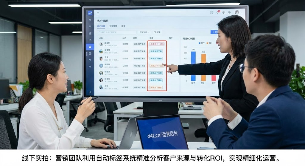 • 客户添加成功时,系统会自动标注来源信息,如「双十一活动」「知乎文章」「线下展会」,这些标签后续价值很大