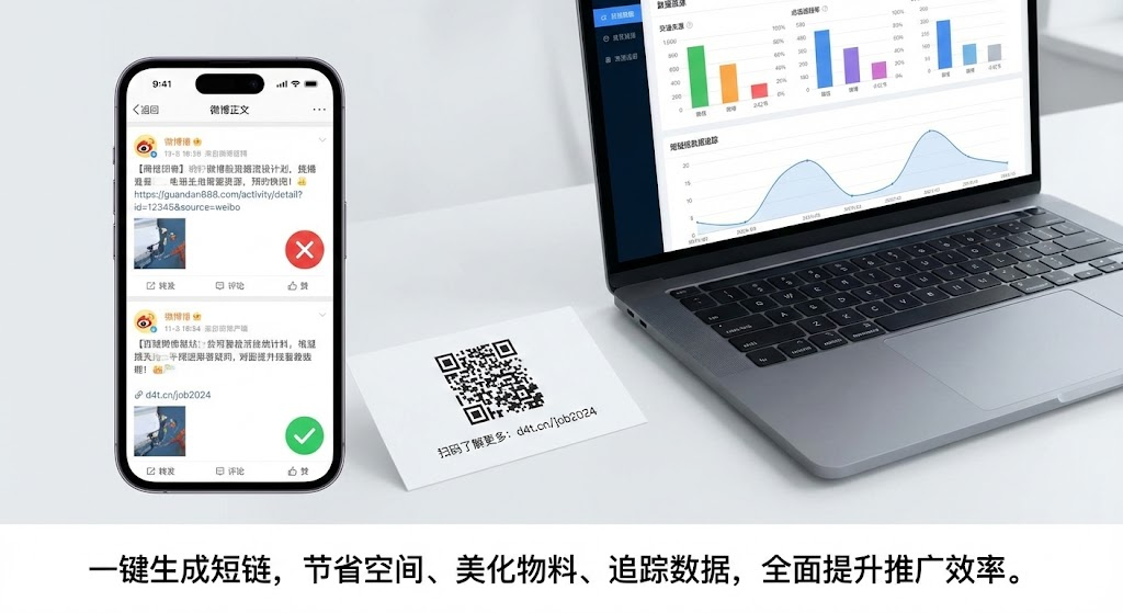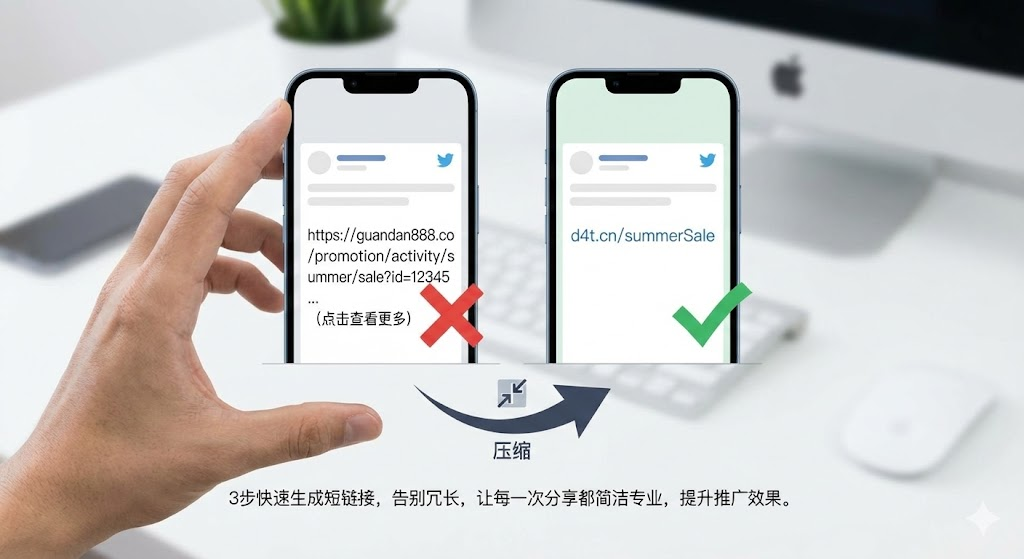发朋友圈、做活动推广时,长链接占满屏幕显得不专业?很多平台还限制字符数,链接一长就发不出去。短链接就是把一长串网址压缩成几个字符的短网址,比如把「https://www.example.com/products/category/item?id=12345&ref=campaign」变成「d4t.ly/3ab2cd」,瞬间清爽了。本文用3个步骤教你快速生成短链接,推荐几款免费好用的工具,5分钟解决链接分享难题,让推广内容更简洁专业。