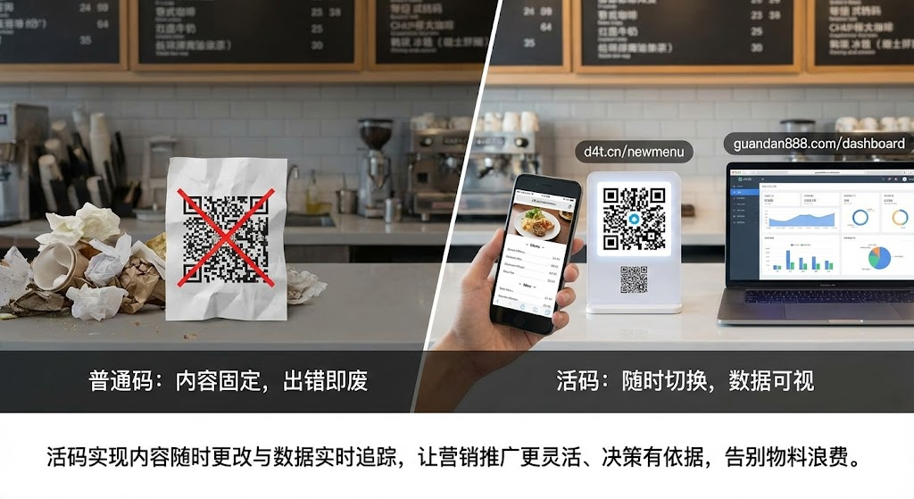 普通码生成后内容固定,印刷物料一旦出错只能全部作废。活码支持后台实时修改跳转内容,同一个码可以服务多轮营销活动,物料零浪费。线下门店的桌贴二维码,上午引流到早餐套餐页,下午切换成下午茶专区,完全不用换码。