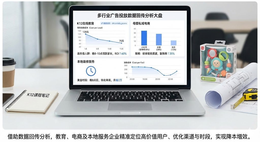 教育机构从盲投到精准狙击:某k12在线教育机构每月投30万广告费,加粉3000人,但真正报名的不到50人。配置回传后,平台识别出"愿意留手机号 晚上8-10点活跃的家长"才是高价值人群,系统自动优化投放。3个月后,单个有效线索成本从120元降到75元,roi提升60%。