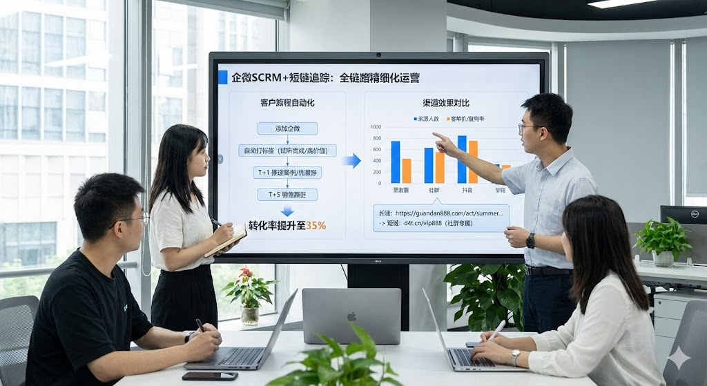 在朋友圈、社群、公众号发推广链接时,用爱短链生成带参数的专属链接。系统自动统计"朋友圈来了50人、社群来了200人",哪个渠道转化高一目了然。配合企微scrm的标签体系,你能清楚知道从抖音来的客户客单价300元,从朋友圈来的客户复购率高40%。