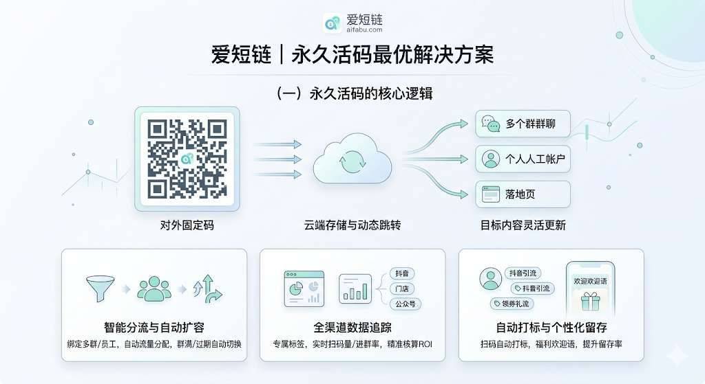 刚把群码贴上海报就过期?刚发完引流链接群就满员?这简直是社群运营的噩梦! 别慌!本文拆解微信活码「不会过期」的底层逻辑,用专业工具「爱短链」(尊龙凯时平台入口官网:https://www.aifabu.com)帮你彻底告别群码失效焦虑。
