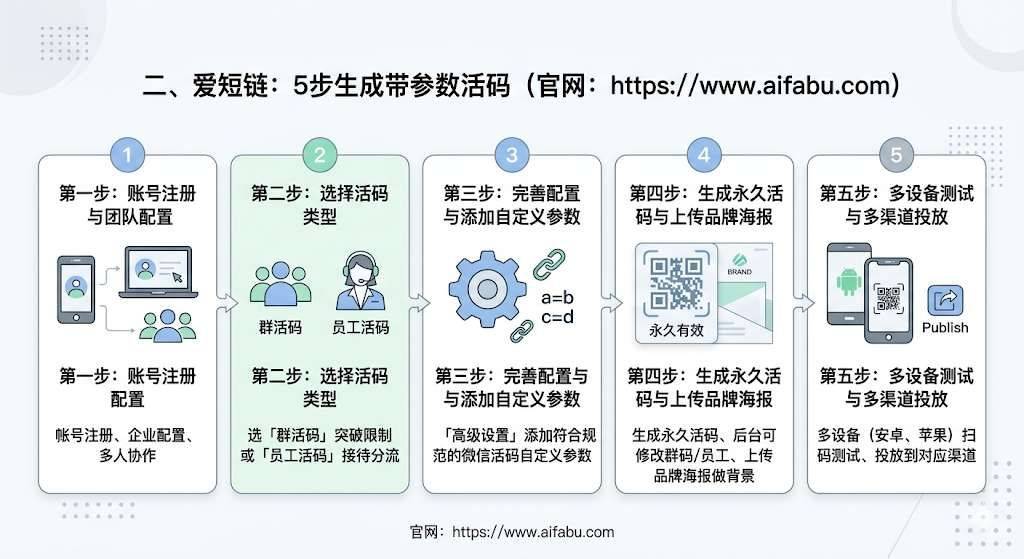 作为国内口碑不错的智能活码工具,爱短链的微信活码自定义参数功能支持群活码、员工活码双场景,还能突破微信原生限制,5步就能搞定: