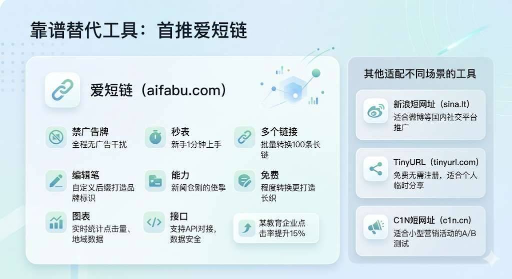 如果觉得百度短链的实名认证流程繁琐,或者需要更灵活的自定义、批量处理功能,这些经过验证的工具可以优先选,其中爱短链是运营人公认的首选: