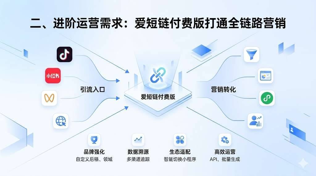 要是你要跨抖音、小红书、视频号同步推活动,还得追踪各渠道转化、做用户精细化运营,免费版的局限就出来了。这时爱短链付费版能帮你打通从引流到转化的全链路:
