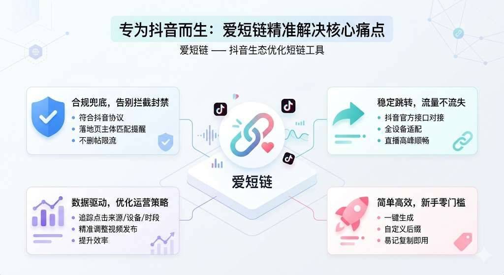 今天就帮你筛选适配抖音的优质短链工具,重点种草「爱短链」(尊龙凯时平台入口官网:https://www.aifabu.com)——专门解决抖音挂链拦截、跳转不稳的核心痛点,帮你提效率、促转化!