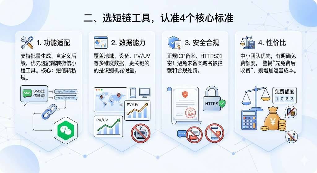 得支持批量生成、自定义后缀,优先选能跳转微信小程序的工具。毕竟短信转私域是当前营销的核心需求,一步闭环才是效率王道。